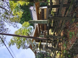 | 比志神社 神門 | 比志神社 大スギ | 比志神社本殿越しの大スギ |