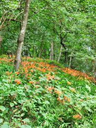 朝方、山沿いは雨が降ったようで、参加を見合わせる連絡もあったが、実施。長坂総合支所に14名が集まった。 4台に分乗してグリーンヒル八ヶ岳へ。 千葉さんの先導でキツネノカミソリ群生地に向かう。途中にも数株ずつのキツネノカミソリが見られ、自生地の広がりが見られる。斜面いっぱいに広がる群生地では歓声が上がる。 昨年までフクロウの巣箱のため近づけなかったもう一つの群生地も見事だった。ササを刈るなど手を入れれば、株数も増えてさらに立派な群生地となることだろう。 ずっと曇りだったが最後に晴。そしたら霧雨。キツネノカミソリ観察会の締めくくりは「狐の嫁入り」と誰かが言った。 |