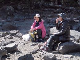 | 亀甲池で昼食 | 亀甲池で昼食 | 昼食も終え、さあ、大河原峠へ |