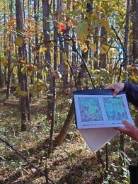 | 美しく紅葉したカラマツの下で 棒道の説明 |