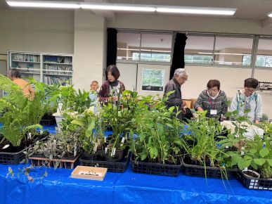 八ヶ岳ふるさと倶楽部で毎年5月に実施している「種苗交換会」に、八ヶ岳自然クラブが共催を申し入れて実現した。 持ち込まれた植物は千差万別で、蕾の上がったヤマユリ、名称付きのサクラソウ、種から育てたフシグロセンノウ、庭で増えたオミナエシやクサソテツ等々種類も豊富であった。 予想外に好評であったため、ふるさと倶楽部側からも「来年も共催できると良いね」との声が上がっていた。 |
