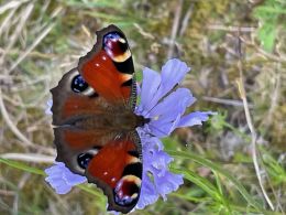 | 昼食後の観察 クジャクチョウはマツムシソウが好き |