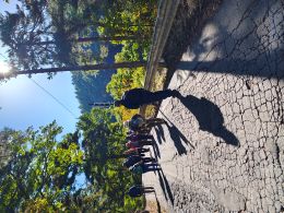 9時に横谷峡駐車場に集合した。日差しは届かず、少し寒いが風もなく、空は高く澄んでおり秋の散策にはもってこいの天気。 |