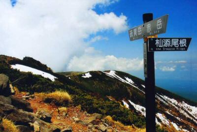 ダケカンバ林を過ぎ、ハイマツの急斜面を登り詰めると6月中旬頃からはツクモグサから始まりオヤマノエンドウ、イワウメ、ミヤマキンバイ、ウルップソウなど等が出迎えてくれます。さらに赤岳方面の鉾岳から日ノ岳周辺にも数多くの花々が咲いており、逆に硫黄岳方面へ行けばコマクサの大群落が見られるなど、まさに三叉峰は花の縦走路です。
