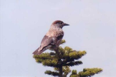 四国、本州、北海道の亜高山帯に分布する留鳥である。人を恐れる様子もなく、ある距離を保って枝から枝へ飛び移り、都合よく針葉樹の先端でポーズをとってくれた。(撮影:亀村 平男)