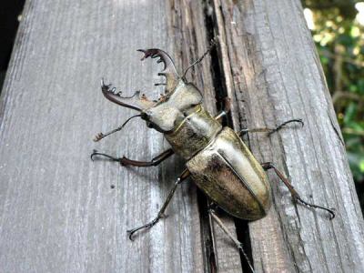 頭部に冠状の突起があるのが外見上の最大の特徴で、大きさとしてはオオクワガタを除けば日本最大級です。体には細かい毛が生え金色から褐色に見えます。クワガタムシの中では飛翔性が高く、灯火等にも飛来してきます。
