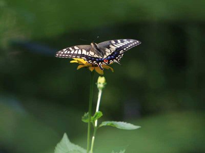 写真は、キアゲハである。キアゲハは、幼虫期セリ科の植物を食べて蛹になり、やがて成虫になって、ひらひらと大空を舞う。(撮影‥栗原達夫)