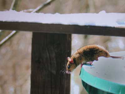 ある夜、台所でガサガサと音がしました。見ると、ゴキブリ捕りにアカネズミが足をとられてもがいていました。 やっとの事で外してあげ、土に下ろすと脱兎のごとく逃げていきました。