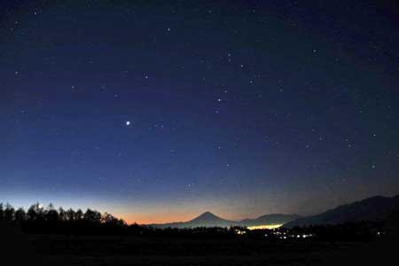 冬の星座と富士