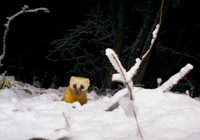 テンは、冬と夏ではその姿を変える。顔の様相が一変するのである。夏は顔全体が真っ黒になる。 写真に写っているのは、冬毛のテンで中々可愛い感じがするが、夏毛のテンは、お世辞にも可愛いとは言い難い。